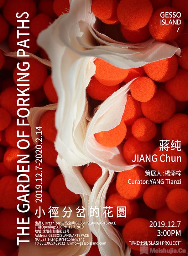 蒋纯借用阿根廷作家博尔赫斯作品《小径分岔的花园》之题,形容此次展览是一条若隐若现的小径。她将日常生活引入到艺术创作,带着绵长的叙述和回忆,诡秘的梦境和虚幻,现实的锋芒和奇异,于是日常像精灵一般藏在这一座无形的花园里。每个作品都是艺术家生活以及个人拼图的小曲,她在现实的流动中捕捉瞬间,那些某一时刻的稍纵即逝既表明了时间的唯一性,也透露了时间所隐喻的无限可能。日常是一本翻不厌的白字书,梦境是一卷没有尺幅的纱,我们哼唱其中,迷失其中。