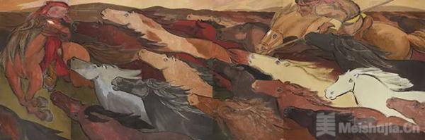 这一次展览的主题是和平与故乡。刘巨德偏好两个形象:鸽子与少女。他画过无数的鸽子和少女,在他笔下,二者完全合而为一,成为纯美至善的象征。刘巨德说过,艺术家不仅要提供美,还要提供慈与善,以慈观世,以善作画。鸽子与少女的形象,俨然成为刘巨德的精神图腾,他以这个图腾的反复创造来宣扬和传播老子“以慈为宝”的和平主义思想。他也画马,既画草原的野马,也画北朝和唐代鞍鞯华丽的舞马。他厌恶战争但崇拜英雄,因为英雄能够牺牲自己止戈为武捍卫和平。马就是英雄的象征,是刘巨德的又一个精神图腾。