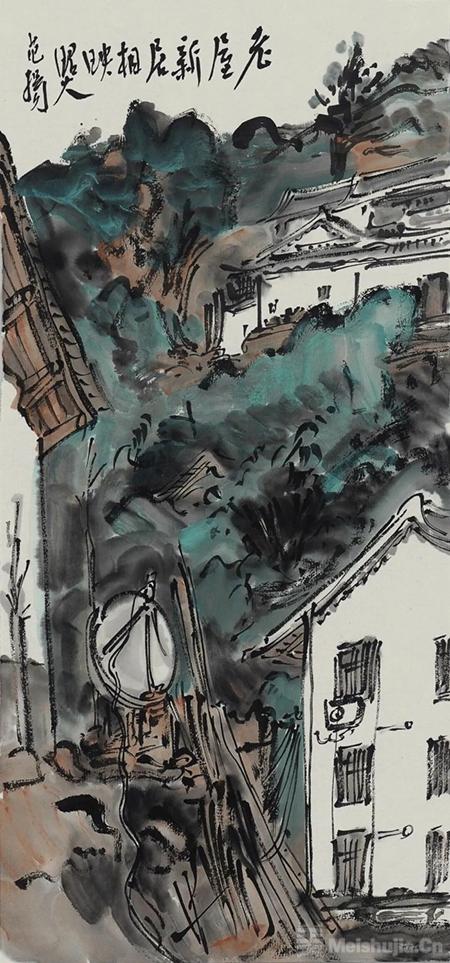 (3/5)范扬《老屋新居相映照》48.8cmx22.7cm
