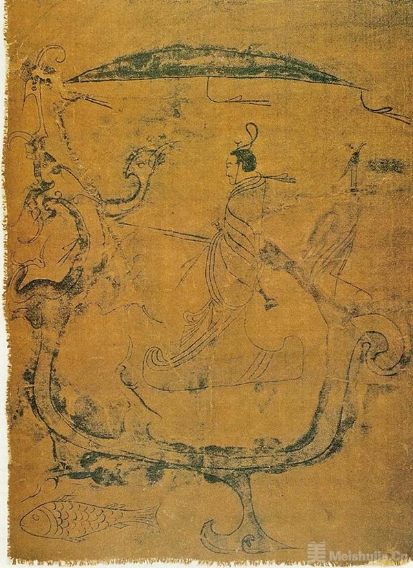 《礼记》言:“礼仪之始,在于正容体,齐颜色,顺辞令。”当我们将目光投向先民的衣冠世界,会发现服饰从最初的蔽体之物,逐渐演变为礼制与哲学的显性载体。战国楚地的《人物御龙图》帛画中,巫师头戴切云冠,身着宽博深衣,衣裾上的升龙纹随龙舟破浪;朱砂与石青的碰撞间,巫觋沟通天地的神圣使命,化作衣纹里的“一波三折”;长沙马王堆汉墓出土的T形帛画中,辛追身着曲裾深衣,衣缘绣满茱萸纹与云气纹,宽达三尺的衣袖如翼舒展。
