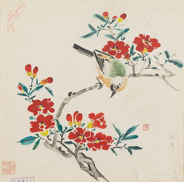 海派花鸟大家唐云有着传奇的艺术人生。他二十余岁便因画名震杭州,被誉为“杭州唐伯虎”。1938年避乱迁沪后,他迅即融入海上艺坛,并敏锐洞察市场需求,将目光转向花鸟画的创作。在继承八大山人、石涛及海派诸家精髓的基础上锐意创新,逐步形成用笔松快洒脱、用墨清透明丽的风格。其创作注重笔墨语言与自然物象的有机结合,既表现自然生趣,又注重笔精墨妙,成功构建起兼具装饰意趣与文人雅韵的双重审美体系,推动了小写意花鸟画革新的成功实践。