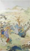 弟子毛国伦初进画院时,程十发为学生规定的基础课为“五写”:临写、写生、速写、默写和写字。这是师古人的学习方法,对于线条的研究、运用、把控都是很好的锻炼。毛国伦记得,老师程十发出国访问,多造访流落海外的名迹,在美国的一个大学博物馆里见到了陈洪绶晚年画的《六逸图》,带回了该图照片,供画院学生临摹学习。师生外出,总是尽情地欣赏古代和民间的艺术作品,因为只有深切地了解和理解传统才谈得上继承和发展,如果连传统的门都还没进,就奢谈发展创新,这就是无根之木,无源之水。程十发从不排斥国外艺术,主张“取古今中外法而化之”,要具有世界意识。程十发的审美理念和教育思想,不仅体现了绘画的民族特性,也体现了绘画的时代特性。