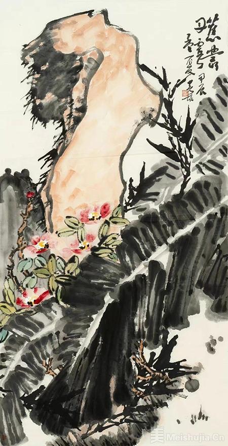 其二,由于他没经历过学院派所谓“系统”的造型训练,这恰恰成就了他。他在形的追求上多了自由少了藩篱。他借来古人,通了造化,而后他又以他那老辣而婀娜的书写,纵肆而潇洒地放胆直取,写出的全是他心里的形。这种形恰好与“似与不似”相合,妙不可言。此谓“重意而轻形”。