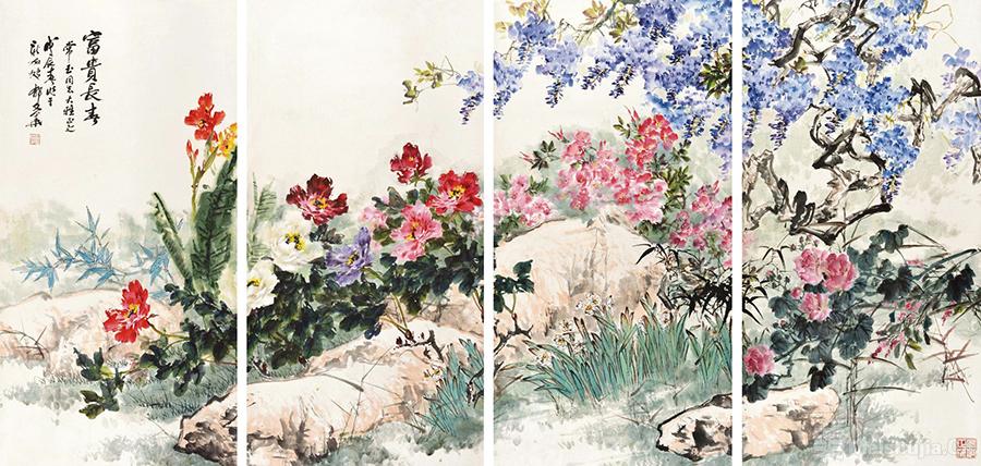 郁文华是国画大师张大千的入室弟子,上海中国画院画师、上海市文史研究馆馆员、上海大风堂书画研究会会长。他山水、人物和花鸟画皆擅长,尤以画牡丹享有盛誉,有“郁牡丹”之美名。