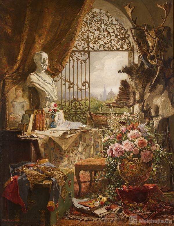 (3/3)《鲁道夫皇子半身像与花卉静物》,Hugo Charlemont,1890年,木板油画