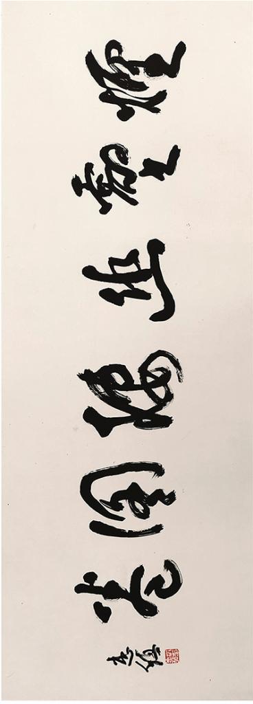 图卷中花鸟、根石等具体形象表现上,似是而非,意象生成,似花鸟、又不是“花鸟”,是根石、又不是“根石”。且早已摆脱传统花鸟画的范式。形、线、色、墨等基本要素随之内容题材形式的转换,追求浑然一体,一派化机的效果上改变而改变,花鸟是大自然中最有灵性的生命,画卷中作为一种文化符号,或喻为苍茫天穹下游动不息的游魂,隐喻在幽深广褒无限的大自然中,与大地这些无言之承载物“根石”浑化一体,隐射出某种特定语境下情绪的反映,亦是心灵深处释放自我生命情感的最佳艺术载体。