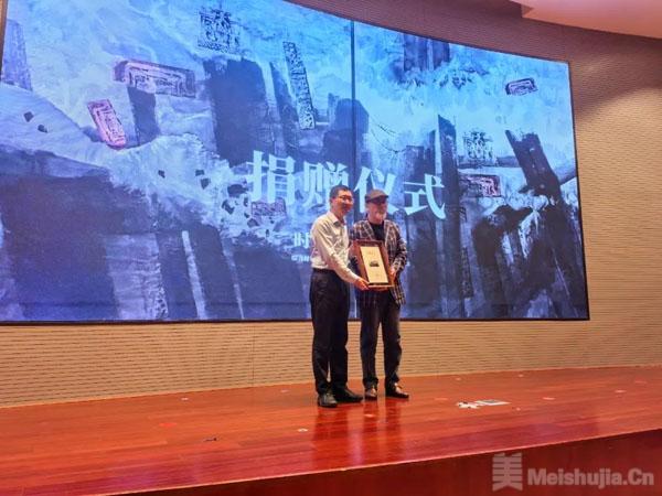 邹明向南京艺术学院美术馆捐赠作品,南京艺术学院院长张凌浩接受捐赠