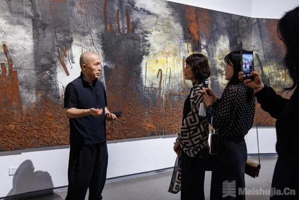 张凌浩在致辞中表示,本次展览呈现了一场水墨的盛宴,不仅展现了邹明先生近年来的艺术探索,更是一次关于水墨艺术在当代语境下自我革新与精神升华的学术探讨。邹明先生的艺术创作不仅仅满足于“再现”的笔墨趣味,而是不断追寻“重构”的可能性。在他的实践中,水墨早已超越了单一的笔墨趣味,成为与工业文明、自然物质、社会记忆展开深度对话的场域。邹明先生的探索,是一种面向未来的中国水墨。邹明先生不仅是一位卓越的艺术家,同时也是长期耕耘于艺术教育的学者。他作为中国国家画院研究员、深圳大学教授,以及多所学术机构的核心骨干,将个人的艺术探索与教育使命结合在一起。这种双重身份赋予他的创作更深远的意义:作品不仅仅是个人表达,更是一种教育现场、一种学术范式。他以作品和行动说明艺术不是固守,而是勇于开拓;艺术家必须在历史与现实之间,在材料与观念之间,找到属于自己的立场。《涅槃重生》的“涅槃”,并非单一的主题,而是一种多层次的隐喻。它象征着水墨在现代性冲击下的不断焚烧与新生,也象征着艺术家精神的持续锤炼,也是当代艺术在全球语境中的文化姿态。