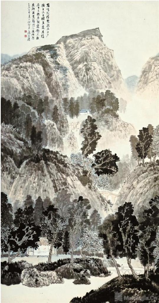 江兆申不仅是新文人画的旗帜性人物,更是传统与现代交汇处一位沉静而坚定的守夜人。他既不盲目西化,也不固守僵化传统,而是深入古典精神的堂奥,从中开掘出与当代对话的可能性。他的山水画初看古意盎然,细观却能发现全新的空间意识和视觉结构。这种“以古开新”的创作理念,使他在传统与现代之间架起了一座桥梁,书画名家谢稚柳先生曾评价:“以清人之笔墨,运宋人之丘壑,而泽以时代之精神气韵。”